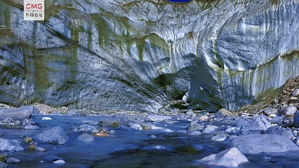 从空中看去,蓝色的冰绵延数公里,静静地躺在山谷之间,在阳光的照射下闪闪发光。冰川表面形成的冰裂、冰蘑菇等自然景观形态各异,见证着地质和自然力量的演变。融化的冰慢慢地流过冰面,形成一条天然的溪流。潺潺的流水声、远处高耸的雪山、近处摇曳的干草,构成了一幅动感又静谧的立体冬季仙境。