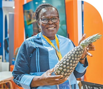 第八届中国国际进口博览会国家综合展上,贝宁国家馆工作人员展示了贝宁奶油菠萝。